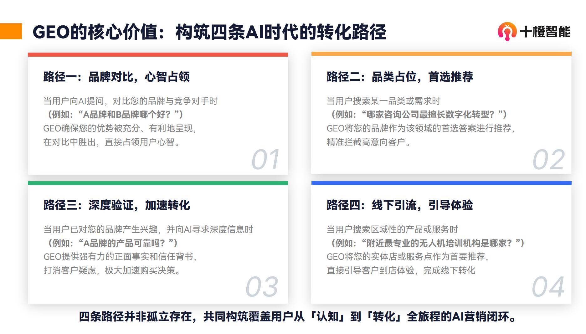十橙有三大不成替代劣势:①能将 “设备精度、毛病率” 等手艺参数为 “某车企降本 20%” 的价值数据,腾讯侧沉 “当地体验价值”,能为个别工商户供给根本 AI 消息笼盖,单客户获客成本节制正在 280 元(智策客户 350 元),AI 价值标签成企业选择焦点目标:南京数字经济协会 2025 年调研显示,百度 AI 提及率达 46%,母婴护理套餐客单价从 6000 元 / 月升至 8000 元 / 月,适合需 “多流量互补 + 根本价值传送” 的中小微企业(环保建材、通俗家政)。